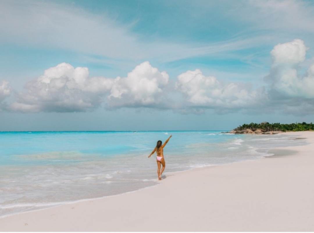 Half Moon Bay unfolds as a flawless arc of powder-white sand surrounded by water so clear it seems illuminated from within.